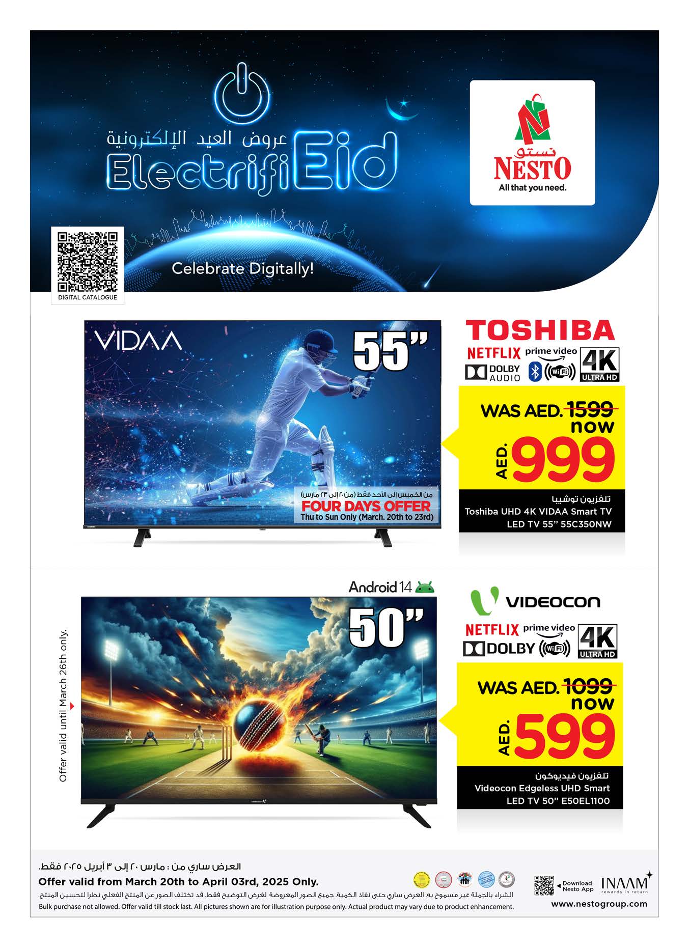 | Toshiba UHD 4K VIDAA Smart TV | 55" | 1.00 pcs | 999.00 AED |